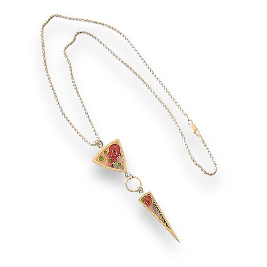 Cloisonné Enameled Large Triangle/Long Triangle Necklace - Cherry Blossom Color Palette