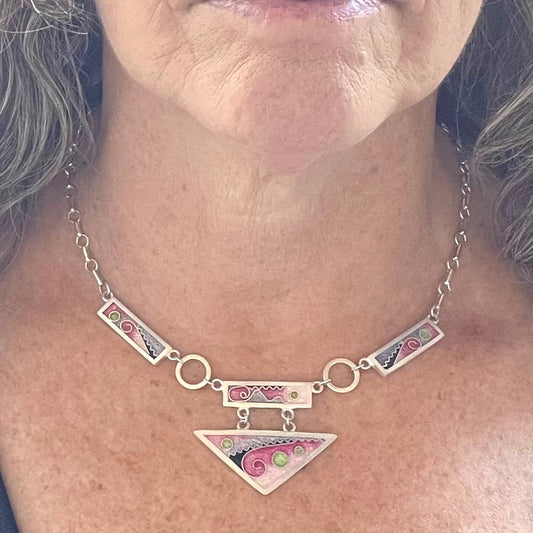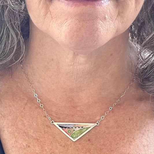 Cloisonné Enameled Triangle Necklace - Cherry Blossom Color Palette