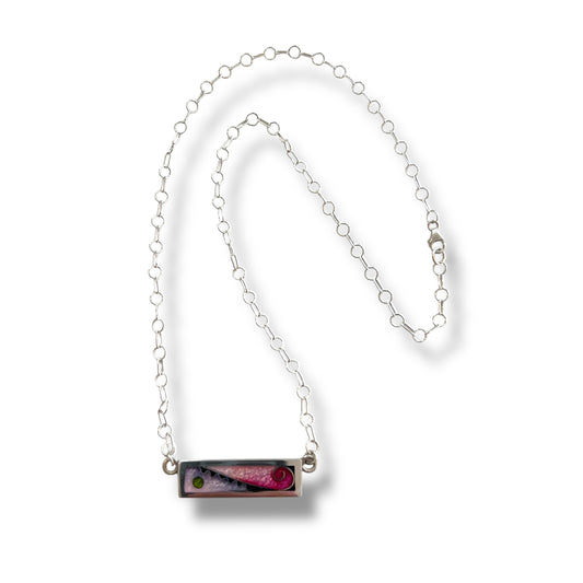 Cloisonne Rectangle Necklace - Cherry Blossom