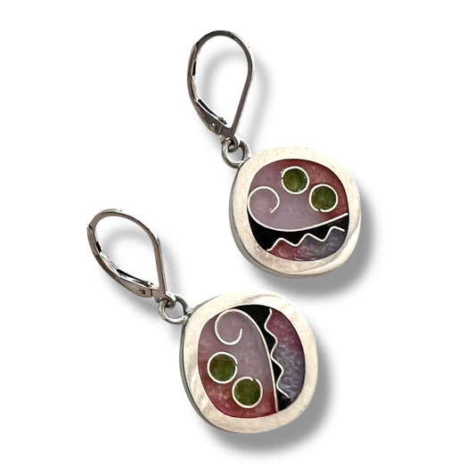 Cloisonné Enameled Circle/Triangle Earrings – Cherry Blossom Color Palette