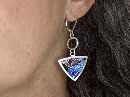 Cloisonné Enameled Triangle Earrings - Ice Color Palette