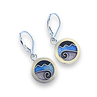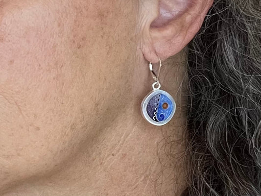 Cloisonné Enameled Circle Hanging Earrings - Ice Color Palette