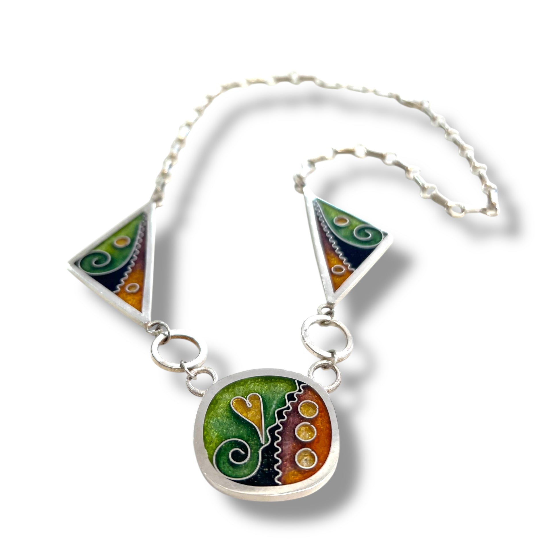 Cloisonné Enameled Large Square/Triangle Necklace - Desert Color Palette