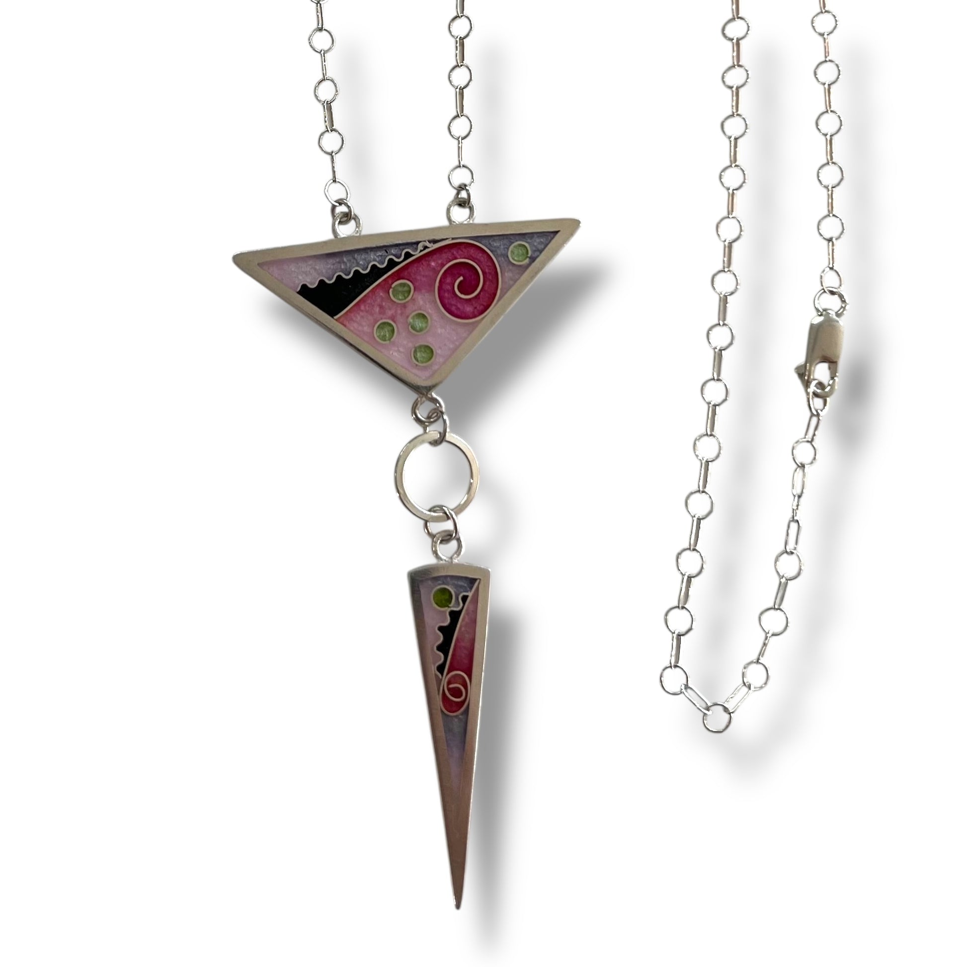 Cloisonné Enameled Large Triangle/Long Triangle Necklace - Cherry Blossom Color Palette