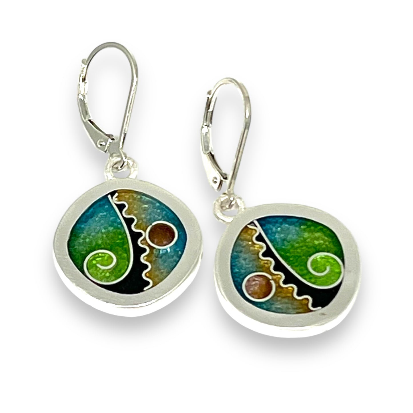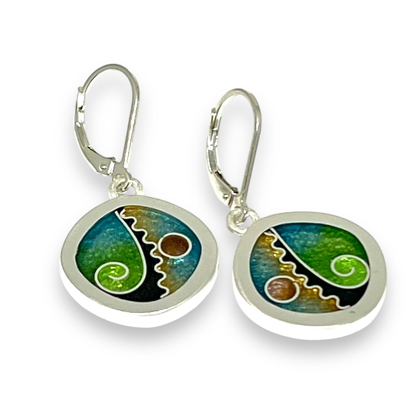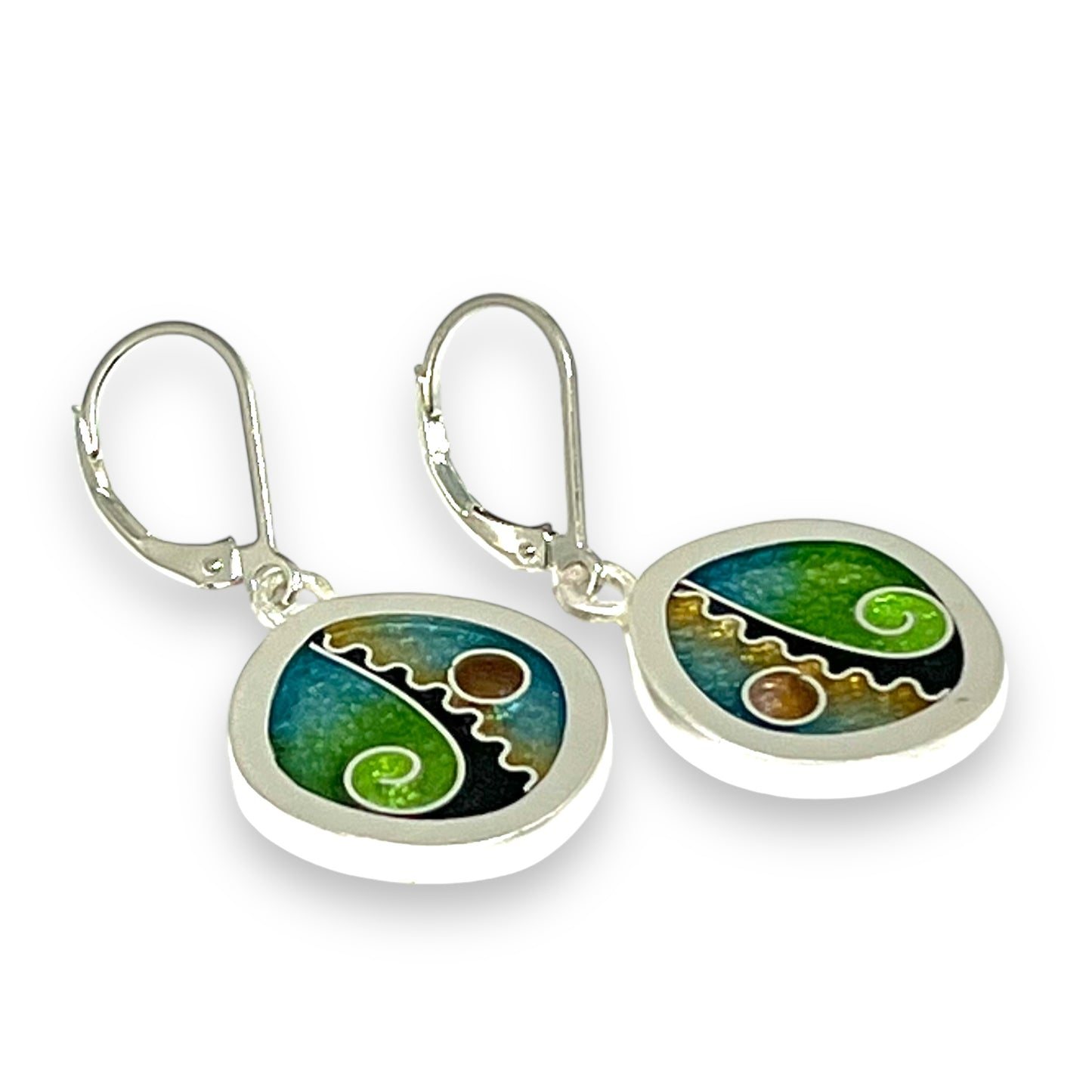 Cloisonné Enameled Rounded Square Hanging Earrings - Meadow Color Palette