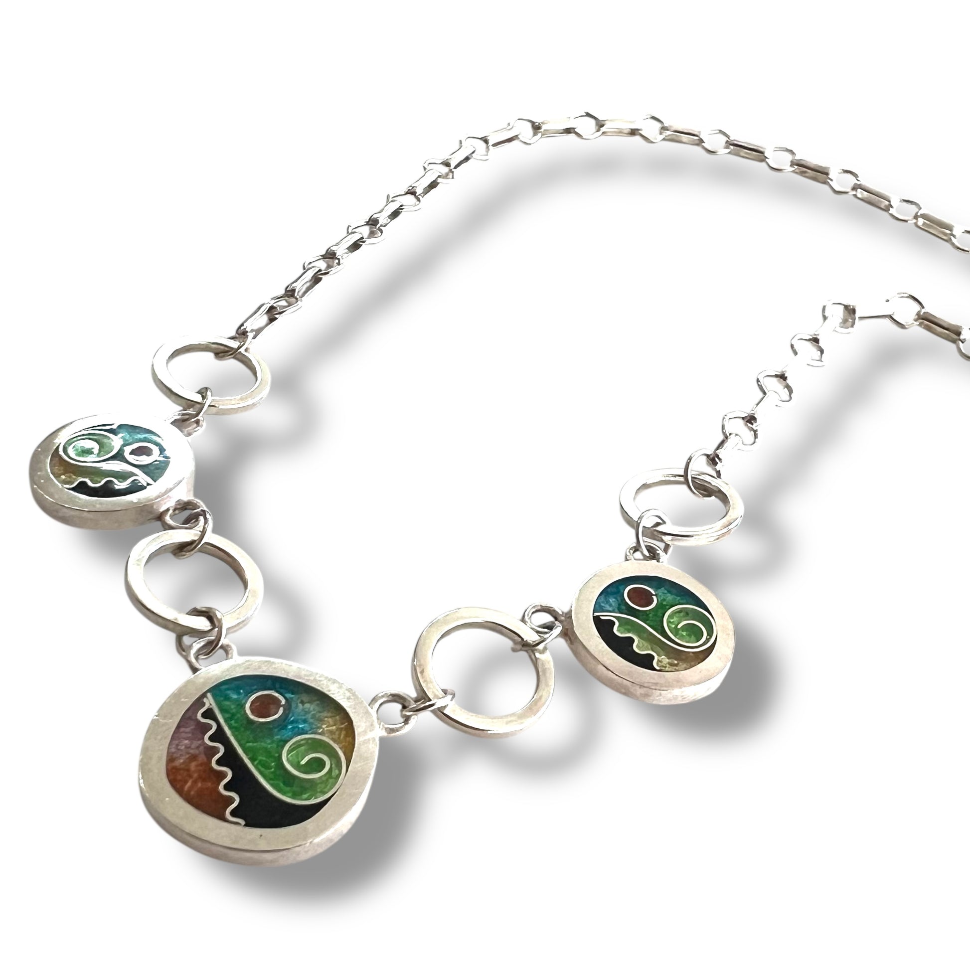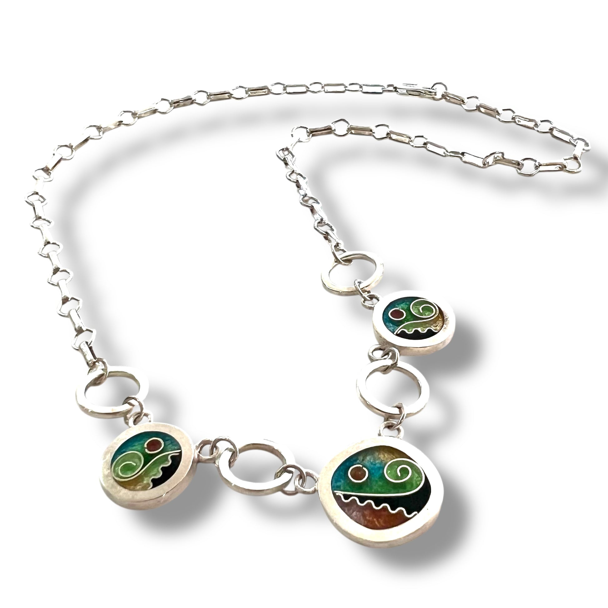 Cloisonné Enameled Square/Two Circle Necklace - Meadow Color Palette