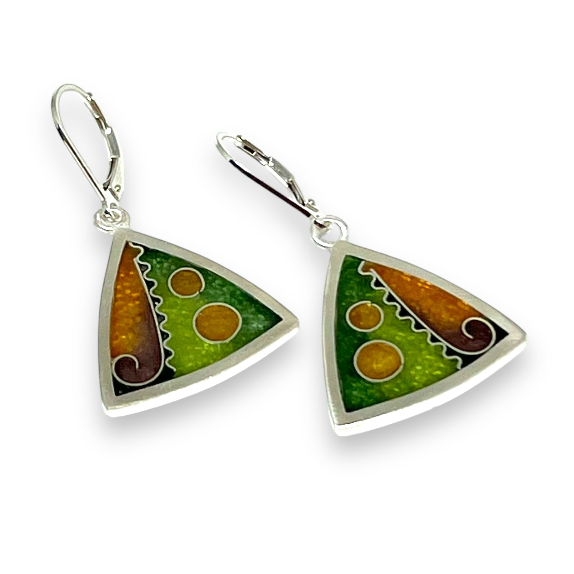 Cloisonné Enameled Triangle Hanging Earrings - Desert Color Palette